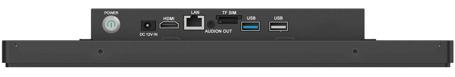 Ports de sortie : HDMI, entrée CC 12 V, LAN, carte TF, alimentation, sortie audio et USB